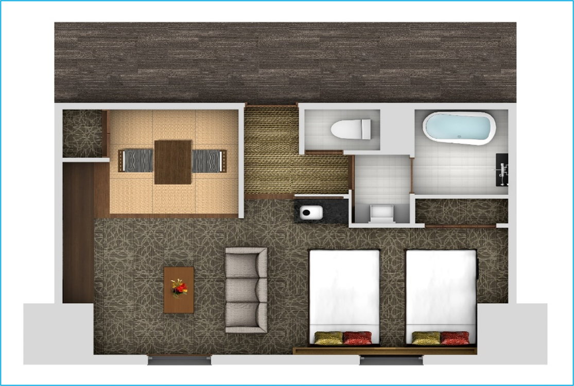 在有高級感的安定氛圍中演出讓人感受到沖繩風格的空間!這是一間雙床間,可以讓長期居住的客人滿意。